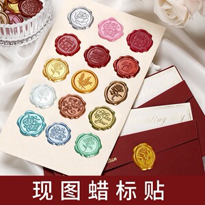 现图蜡标贴 火漆印章贴纸 密封信封婚礼请柬酒瓶礼物装饰封口贴