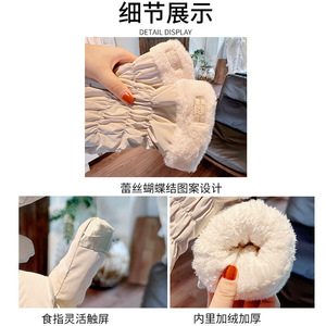 韓国版の女性用学生手袋、冬用ダウンコットンとベルベットの厚みがあり、防寒、防水、暖かい、タッチスクリーン、防風、スキー、サイクリング用