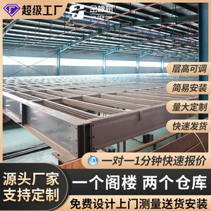 カスタムメイドのロフト型棚、I型鋼プラットフォーム、工場、工場舎、作業場、2階建ての鋼製ヘビーデューティロフト棚