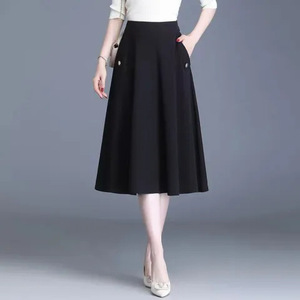 2025 春夏ポケット A ラインスカートミドル丈エレガント多用途弾性ウエスト大きいサイズ痩身スカート女性