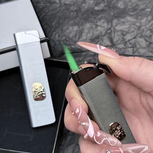 Xinxiexintian 手作りカスタマイズされた防風グリーンフレームインフレータブルライター、ハイエンドの軽い高級感、パーソナライズされた耐久性、ボーイフレンドへのギフト