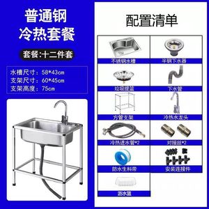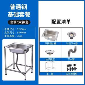 洗菜盆厨房水单带支架水池简易304不锈钢洗碗洗手盆出租房新款包