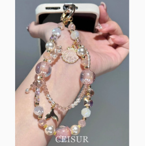 [ブルース詩] 合金孔雀ハイエンド電気メッキ金箔ビーズライト高級 DIY クリエイティブ手作り携帯電話チェーン