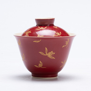郎红烫金兰花盖碗红色陶瓷泡茶碗国风结婚婚礼敬茶碗茶杯中式新款