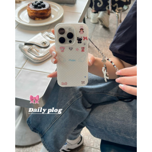 ins水玉羽KTメロディーイラストiPhone16 Apple 15ProMax/14携帯電話ケース新モデルに適しています