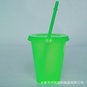 クロスボーダー新しいクリエイティブウォーターカップストローカップpp素材16oz475mlコンパクト蛍光グリーングリッターカップ