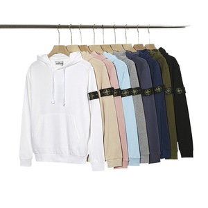 クロスボーダークラシックSTONEストーンソリッドカラーバッジ長袖スウェットシャツフード付きプルオーバースウェットシャツ男性と女性のための正しいバージョントレンディ