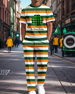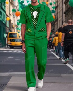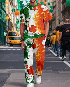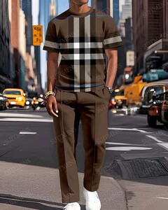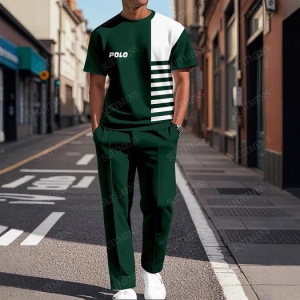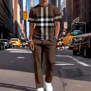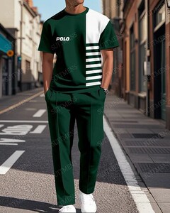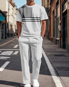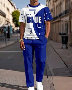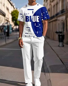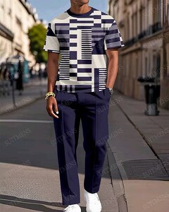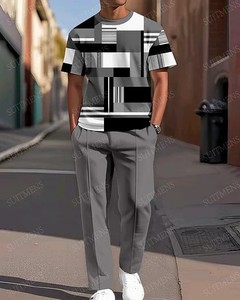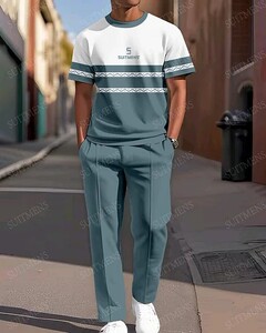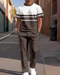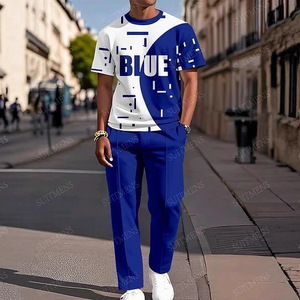 潮流印花休闲短袖t恤长裤两件套青年套装