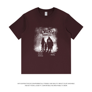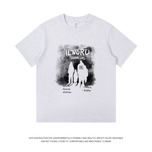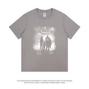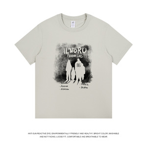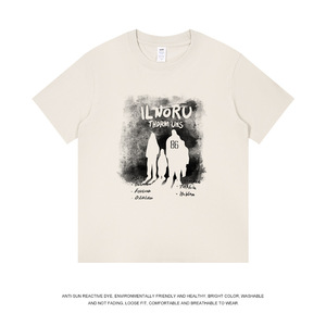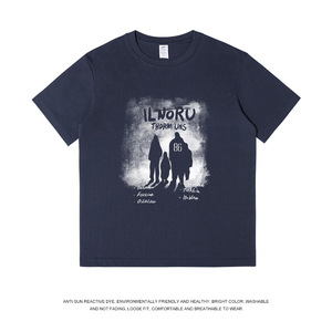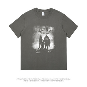 メンズ夏和風バックレトロプリント Tシャツ男性と女性のラウンドネックルーズ半袖トレンディな多用途コットントップ