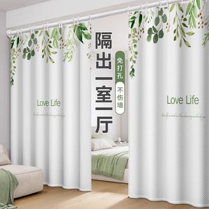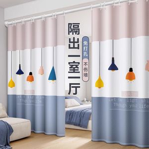 ルームディバイダーカーテンドアカーテン寝室カーテンロッドパンチングなしリビングルーム賃貸住宅スクリーンベッドブロックカーテン布