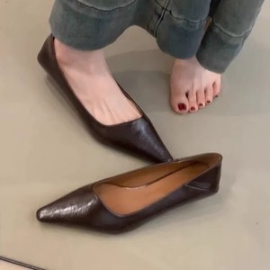 牛革バージョン~ミニマリストスタイルの小さな猫のヒールとポインテッドトゥの女性用パンプス2025秋通勤スティレットヒールの小さな革靴