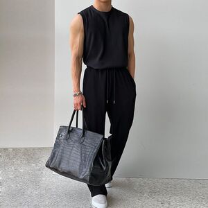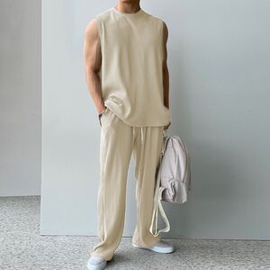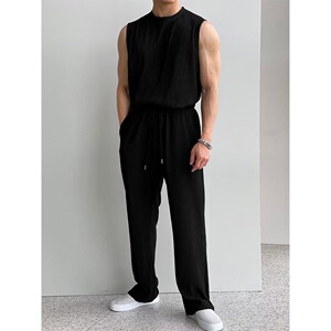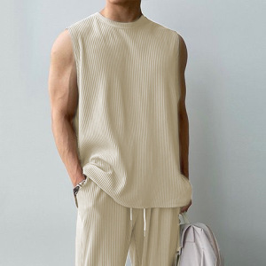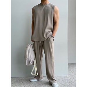 アメリカンアイスシルクベスト、ズボン、スポーツウェアスーツ、筋肉質の男性のフィットネストレーニングノースリーブシャツ、肌に優しく通気性のあるベスト