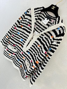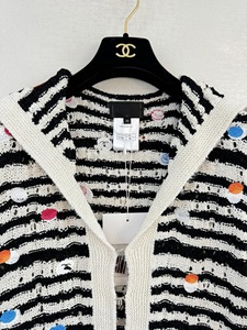 珍藏高定24早秋新款小香风可爱五彩波点刺绣镂空宽松翻领针织开衫