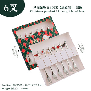 圣诞吊坠勺叉6PCS-银色【绿盒】