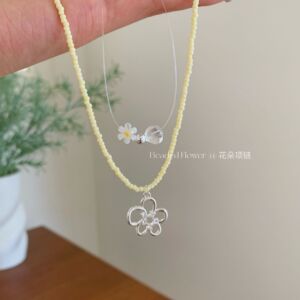 夏黄色デイジーフラワー釣り糸ビーズ鎖骨チェーン女性のためのインスタイルニッチ小さな新鮮な中空ペンダントネックレス