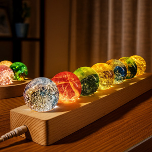 七彩琉璃珠发光水晶球星空小夜灯创意桌面家居装饰品摆件节日礼物