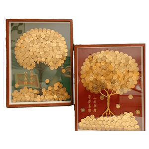 硬币自备(红色背景+诸事皆宜贴纸算盘元宝+黑色相框+古铜色树干+胶枪胶棒)