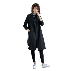 秋の黒の英国スタイルの女性用ミドル丈コート、春と秋の新しいスタイルのウインドブレーカー、ファッショナブルな気質、女性用ウインドブレーカージャケット