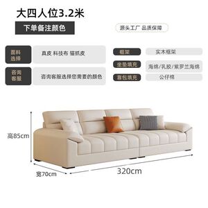 新款意式轻奢科技布沙发客厅小户型家用卧室真皮沙发直排豪华沙发