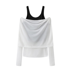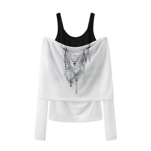 现货2025秋季新款链条印花假两件修身长袖T恤 70801106