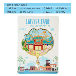 金属製冷蔵庫用マグネット、主要都市の旅行土産、パールペンダント、文化的で創造的な磁気ステッカー、景勝地の売れ筋の小物