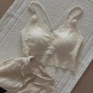 法式蕾丝女士无痕吊带背心交叉美背内衣女细肩带夏季薄款透气文胸
