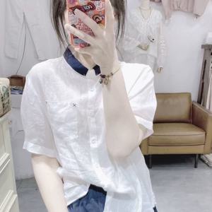 ヨーロッパステーション 2025 新しい夏のファッショナブルでシンプルで多用途なカーディガントップスステッチボタン半袖シャツ女性用