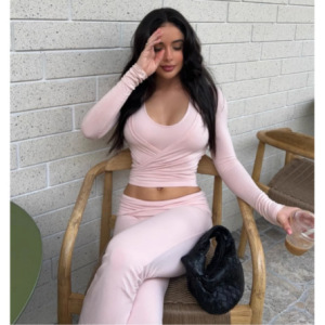 csb*欧美绑带长袖开衫健身系带气质普拉提修身瑜伽弹力裸感81777