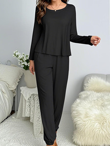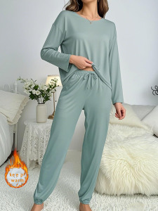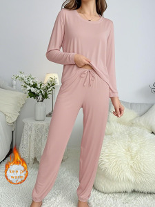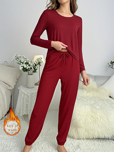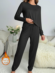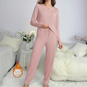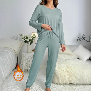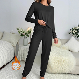 2025年亚马逊速卖通欧美新款圆领针织加绒春秋冬长袖长裤休闲套装