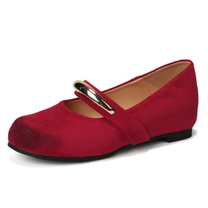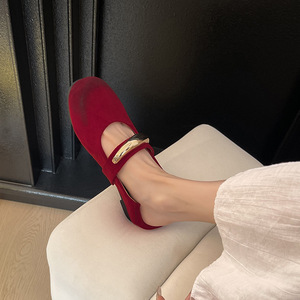 现货~内增高4cm~红色法式玛丽珍单鞋2025年春季百搭浅口平底豆豆