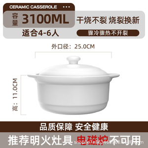 白いキャセロール白磁 Kangshu セラミックキャセロール家庭用大容量シチューとスープガスガスキャセロール