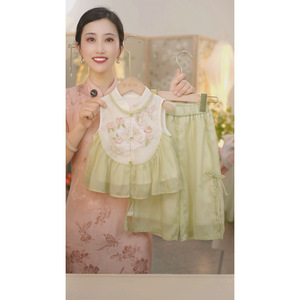 现货SC286【青柠】女童夏季新中式短袖中国风套装