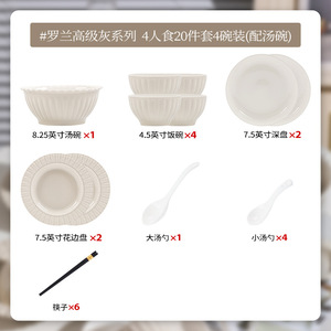 高級グレー食器セット家庭用セラミックライスボウル組み合わせシンプルなスタイルの釉下色食器プレートボウル卸売
