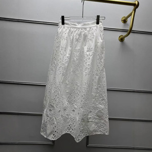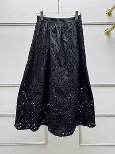 法式小众25年早秋新款优雅镂空刺绣花卉A字大摆高腰中长款半身裙