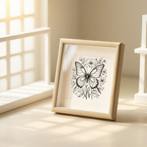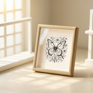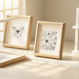 厂家批发简约木制实木中空7寸8寸10寸蝴蝶简笔画画框摆台装饰居家