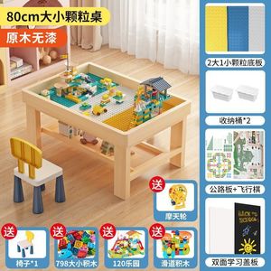 無垢材ビルディングブロックテーブル知的発達多機能男の子と女の子テーブル大粒子ビルディングブロック組み立ておもちゃテーブル学習テーブル