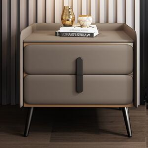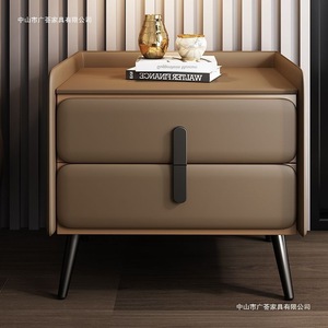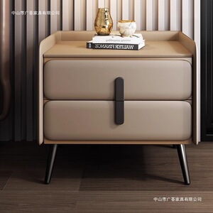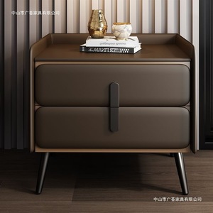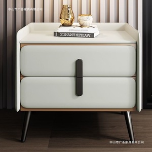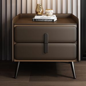 ベッドサイドキャビネットハイエンドライト高級シンプルな無垢材家庭用レザーモダンな寝室の収納キャビネット収納と取り付けベッドサイドキャビネット