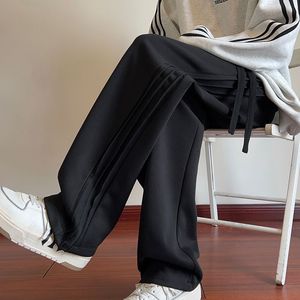 裤子男款2025新款重磅直筒卫裤加长美式潮牌侧条纹宽松运动休闲裤