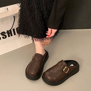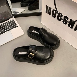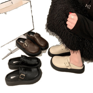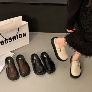 Birkenstock 新しいレザーアウターウェア包頭怠惰なスリッパ女性のための 2025 春多用途厚底高さ増加春と夏のスリッポン