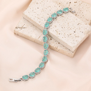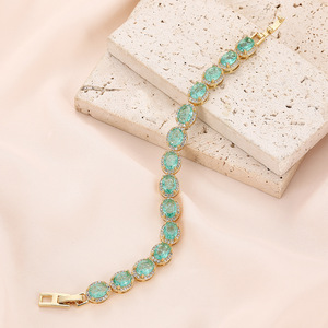 跨境欧美时尚镂空椭圆形手链镀金镶嵌锆石手饰女士时尚百搭彩色