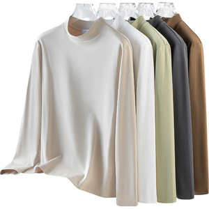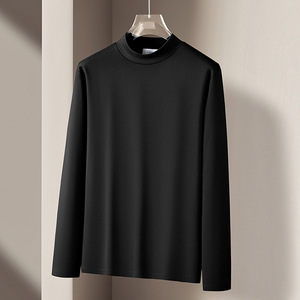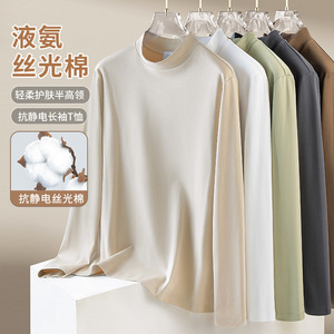 シルケットコットンハーフタートルネックボトリングシャツメンズ春秋帯電防止暖かい長袖Tシャツインナーミッドカラーオータムコート25新スタイル