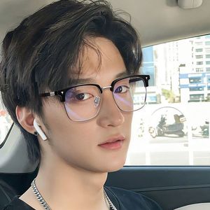 潮流痞帅近视镜男款无度数防蓝光平光镜女款半框眉毛架近视眼镜架