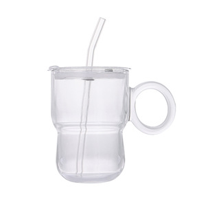 带吸管玻璃水杯大高颜值咖啡杯带把手纯色双饮办公室礼品印制logo