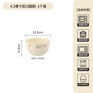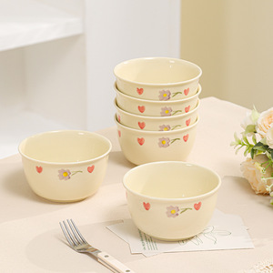 奶油风陶瓷碗碟可放微波炉家用一人食4.75寸碗家用吃米饭碗沙拉碗
