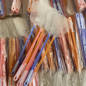 家庭用の丈夫な昔ながらの白いプラスチック製のハエたたき、厚くて長く、防虫剤と蚊よけに万能です。