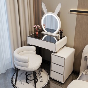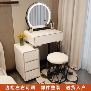 2025 新しいモダンなシンプルなドレッシングテーブル小さなアパートライト高級無垢材クリームスタイルドレッシングテーブルスマートキャビネット付き