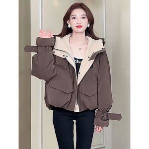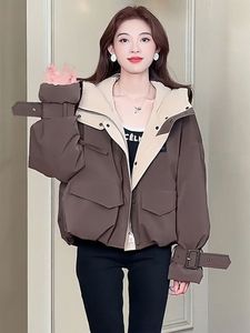 ショートワークウェアダウンジャケット女性のための 2025 冬の新韓国スタイルルーズカジュアルファッションフード付きパーカージャケット