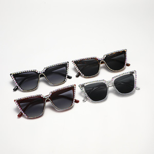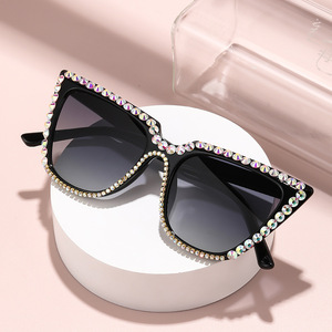 女性用クロスボーダーラージボックスキャットアイダイヤモンドサングラス、トレンディな顔の修正、ヨーロッパとアメリカのパーティー個性、インターネットセレブサングラス
