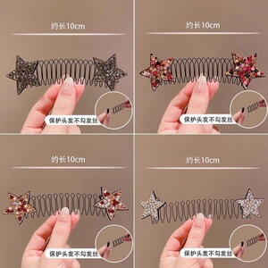 女性用五芒星ラインストーンヘアピン、後頭部と額の切れ毛コーム、目に見えない固定整理ツール、ヘアフープ、プルコーム