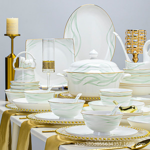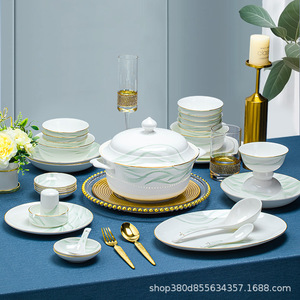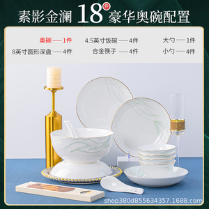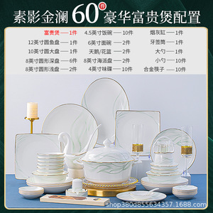 2025新款高温釉下彩景德镇骨瓷餐具碗碟套装家用中式乔迁定制礼品